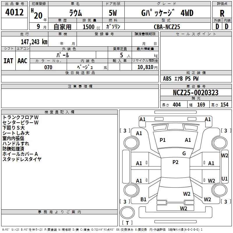 TOYOTA RAUM G PACKAGE 4WD - лот 4012