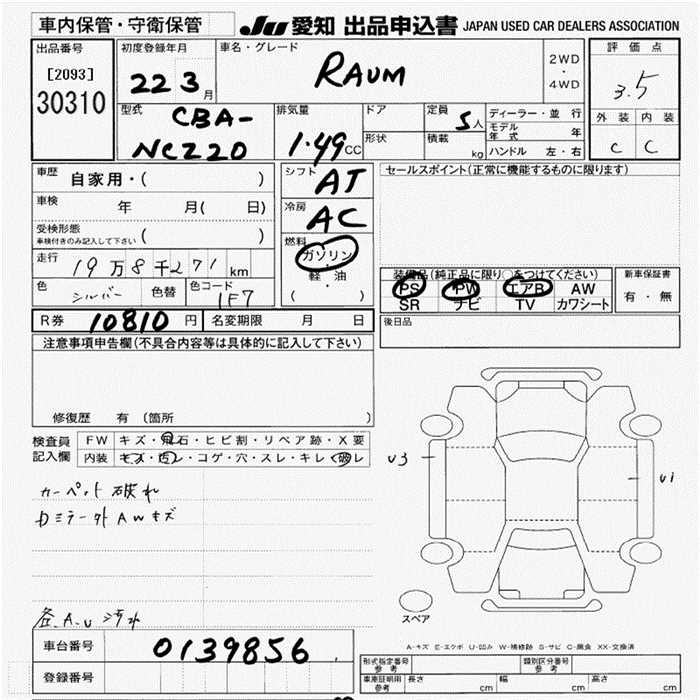 TOYOTA RAUM - лот 30310