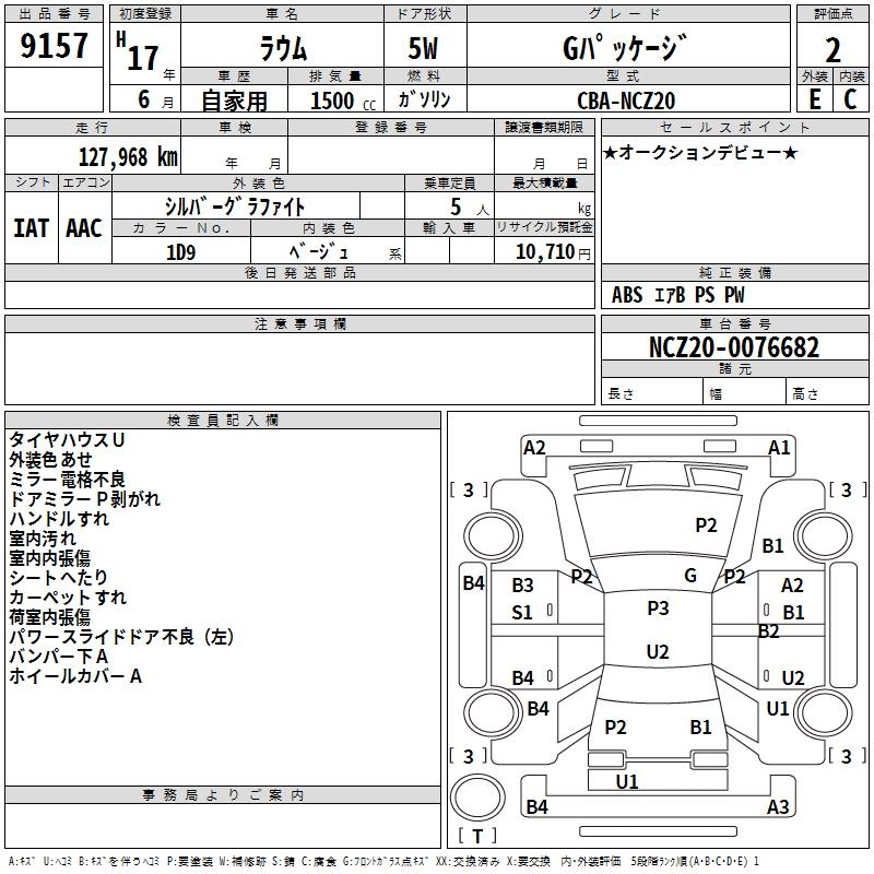 TOYOTA RAUM G PACKAGE - лот 9157