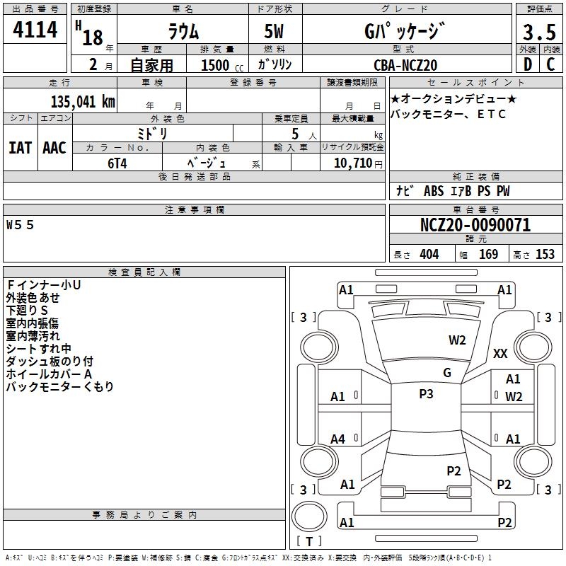 TOYOTA RAUM G PACKAGE - лот 4114
