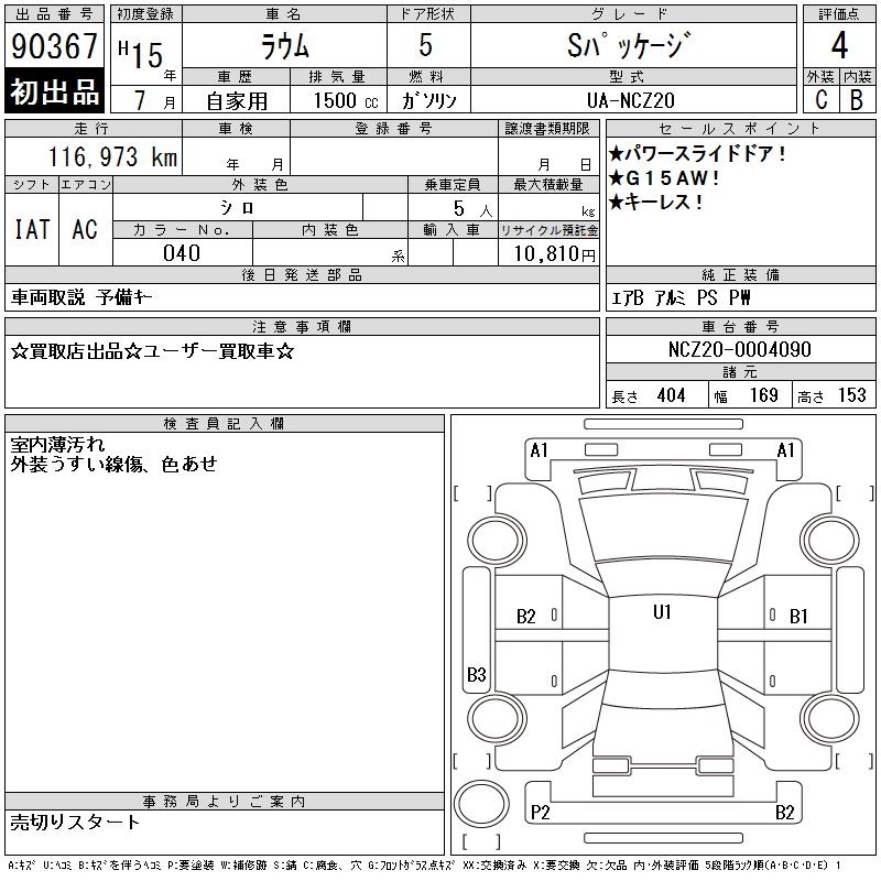 TOYOTA RAUM S PACKAGE - лот 90367