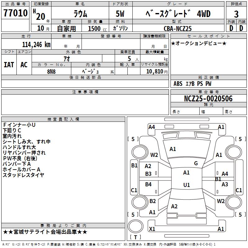 TOYOTA RAUM BASE GRADE 4WD - лот 77010