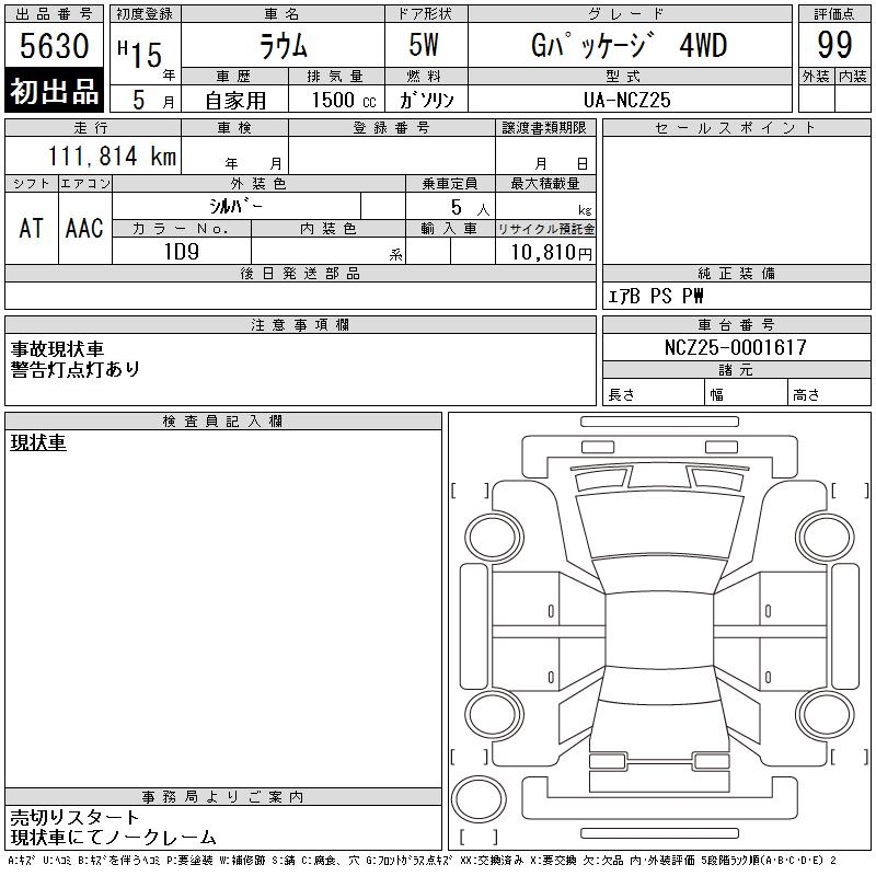 TOYOTA RAUM G PACKAGE 4WD - лот 5630