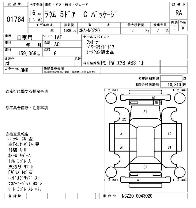 TOYOTA RAUM C PACKAGE - лот 1764