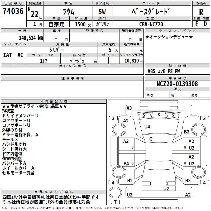 TOYOTA RAUM BASE GRADE - лот 74036