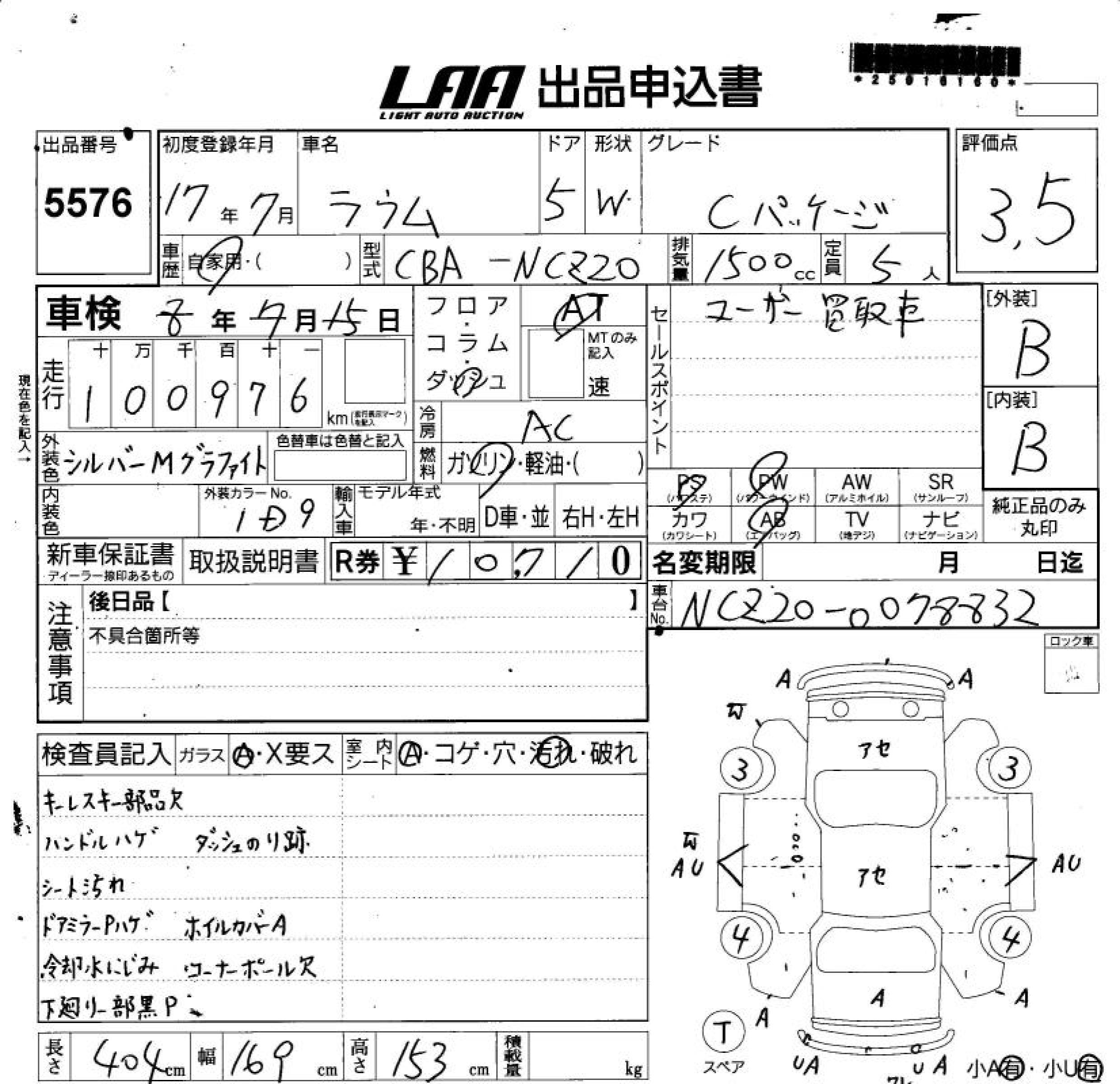 TOYOTA RAUM RAUM C PACKAGE - лот 5576