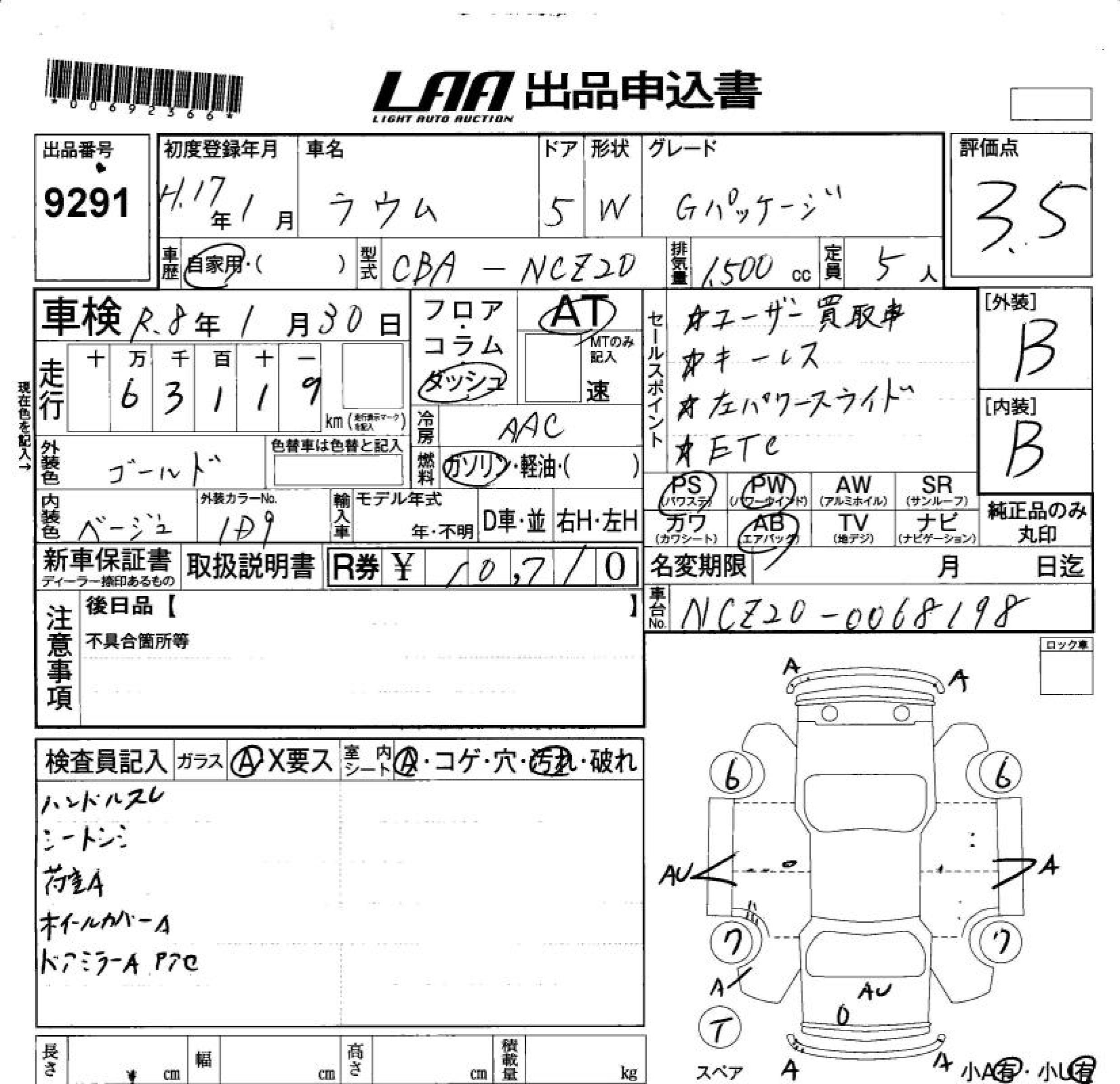 TOYOTA RAUM G PACKAGE - лот 9291