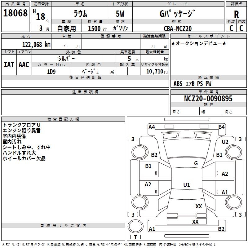 TOYOTA RAUM G PACKAGE - лот 18068
