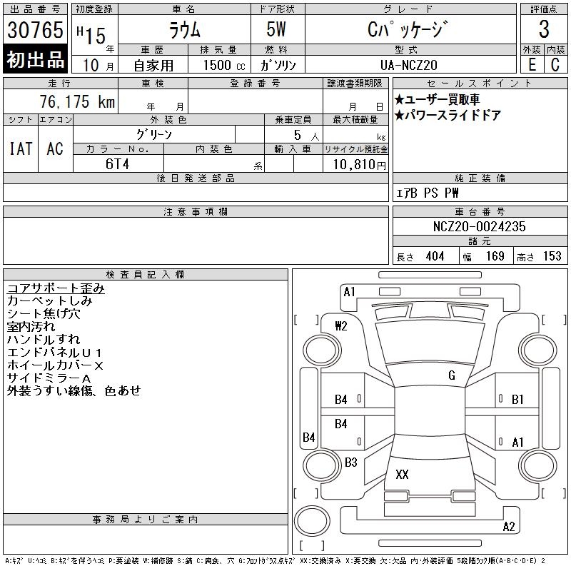 TOYOTA RAUM C PACKAGE - лот 30765