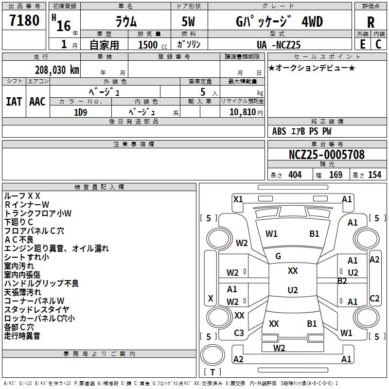 TOYOTA RAUM G PACKAGE 4WD - лот 7180