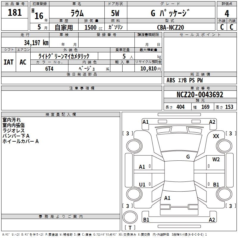 TOYOTA RAUM G PACKAGE - лот 181