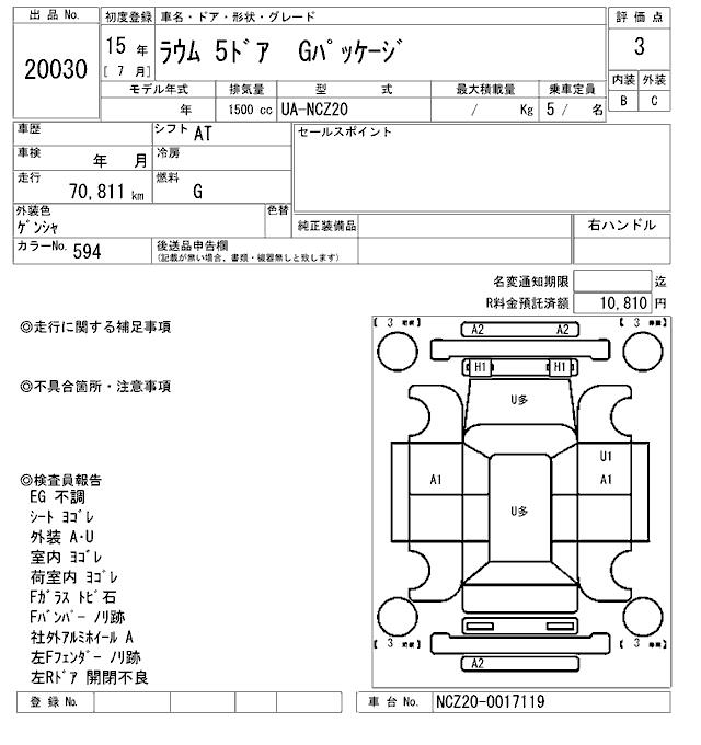 TOYOTA RAUM - лот 20030