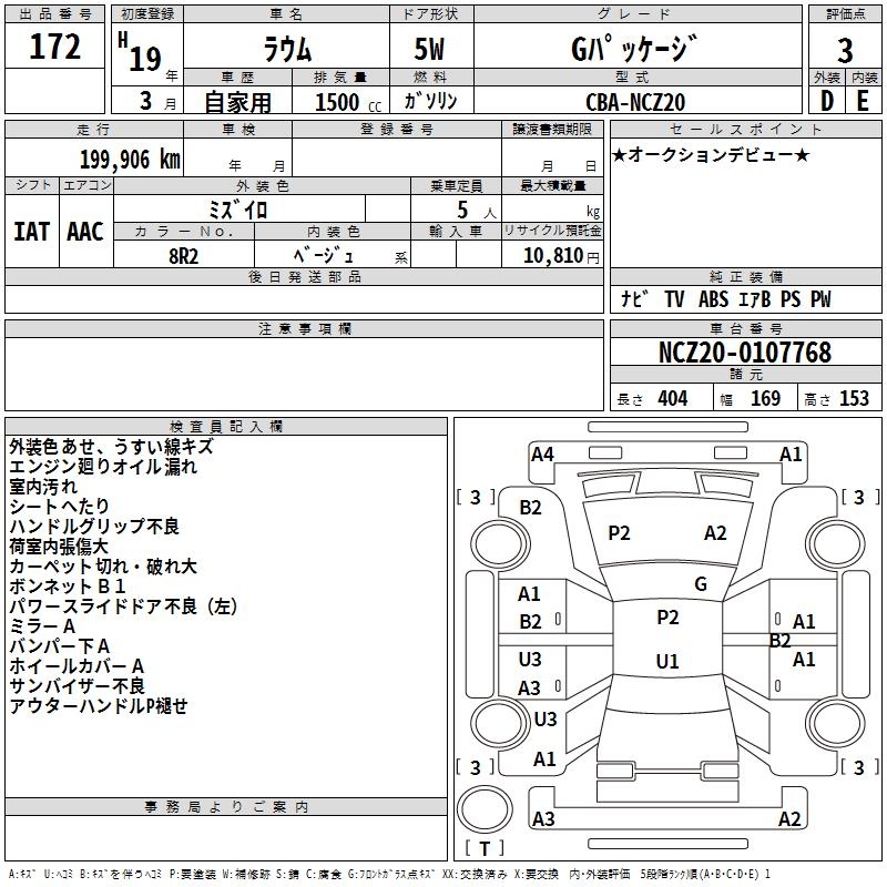 TOYOTA RAUM G PACKAGE - лот 172