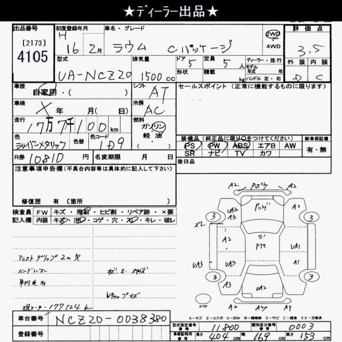 TOYOTA RAUM C PACKAGE - лот 4105