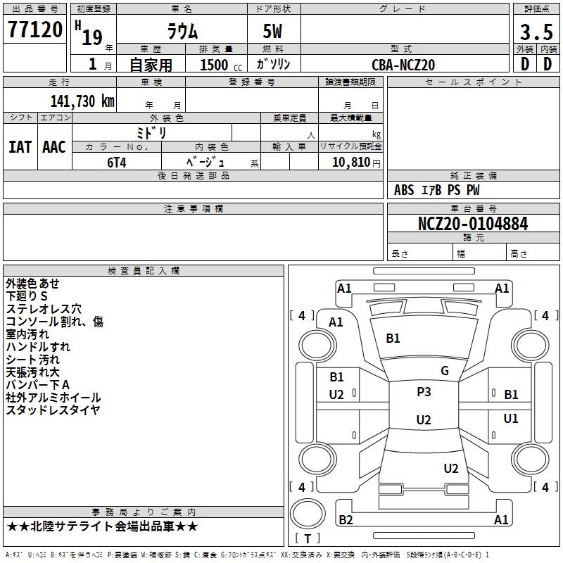 TOYOTA RAUM - лот 77120