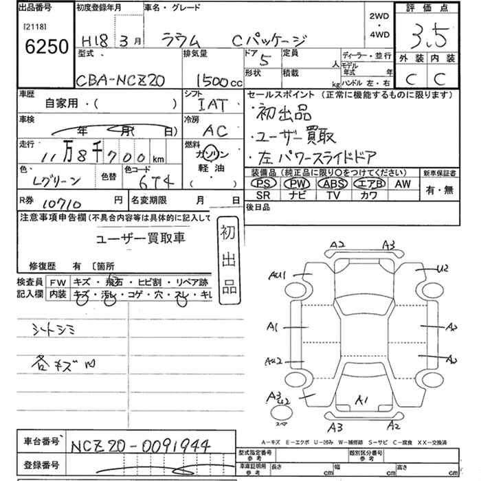TOYOTA RAUM C PACKAGE - лот 6250