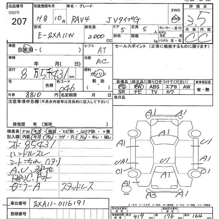 TOYOTA RAV4 J 4WD V TYPE G - лот 207