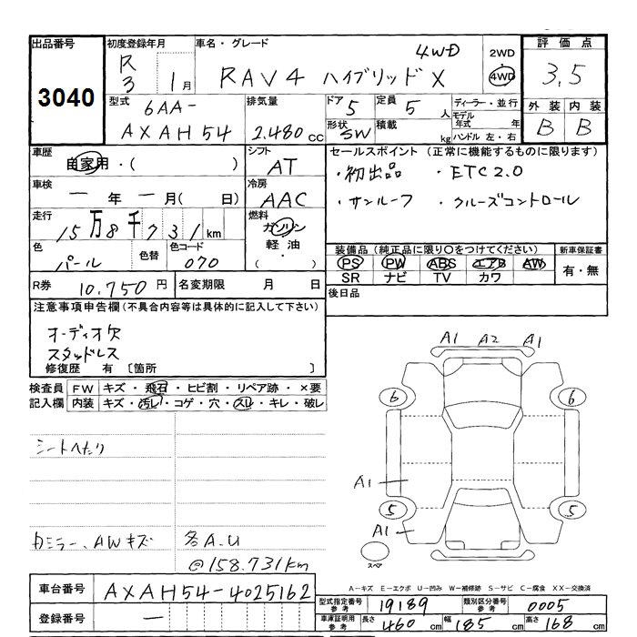 TOYOTA RAV4 4WD HYBRID X - лот 3040