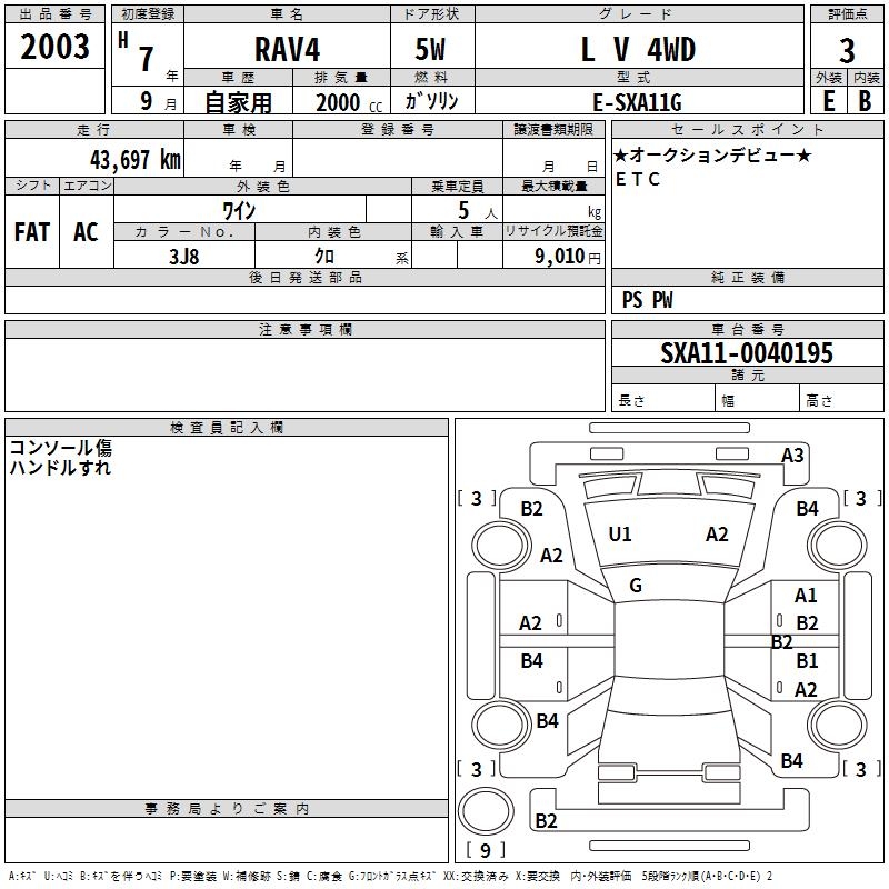 TOYOTA RAV4 L 5 4WD - лот 2003