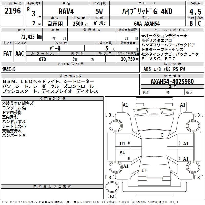 TOYOTA RAV4 HYBRID G 4WD - лот 2196
