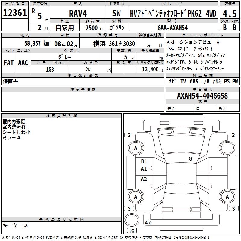 TOYOTA RAV4 HVADO BENCH . OFFROAD 4WD - лот 12361