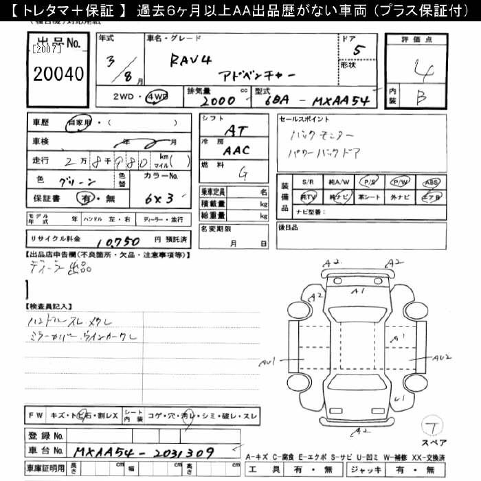 TOYOTA RAV4 4WD ADVENTURE - лот 20040