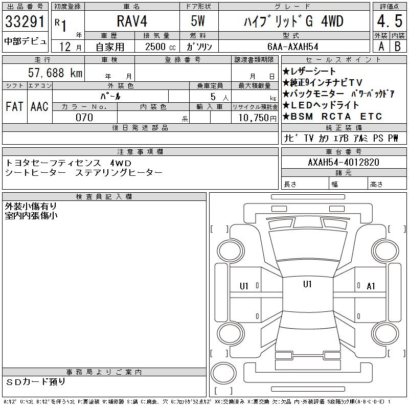 TOYOTA RAV4 HYBRID G 4WD - лот 33291