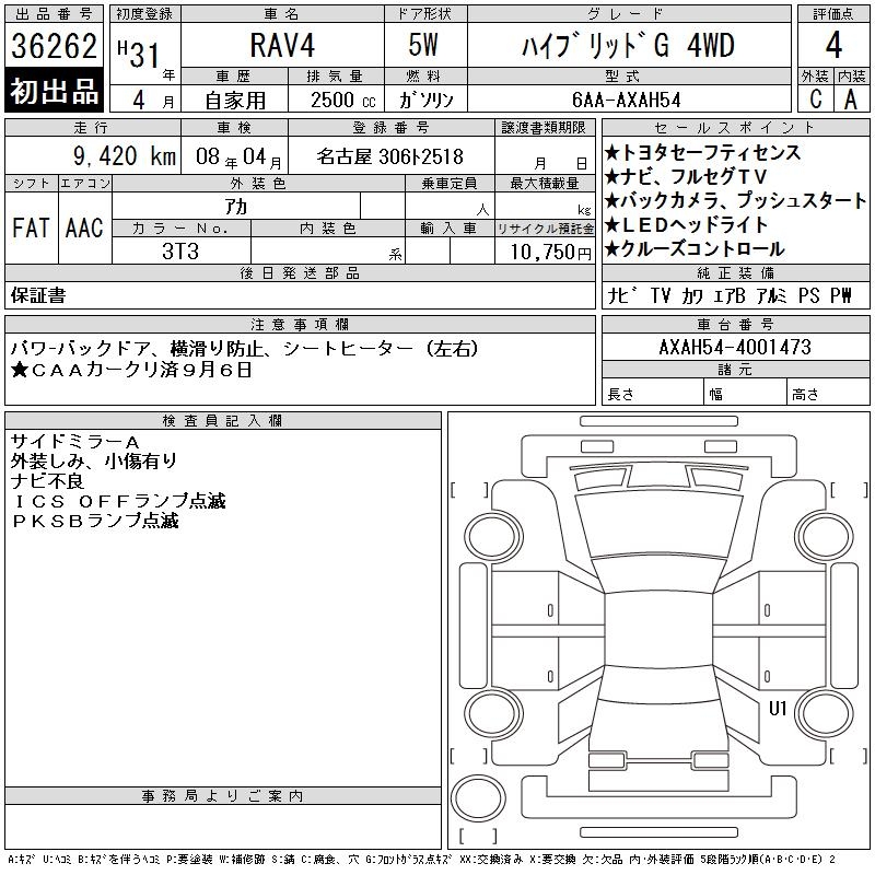 TOYOTA RAV4 HYBRID G 4WD - лот 36262