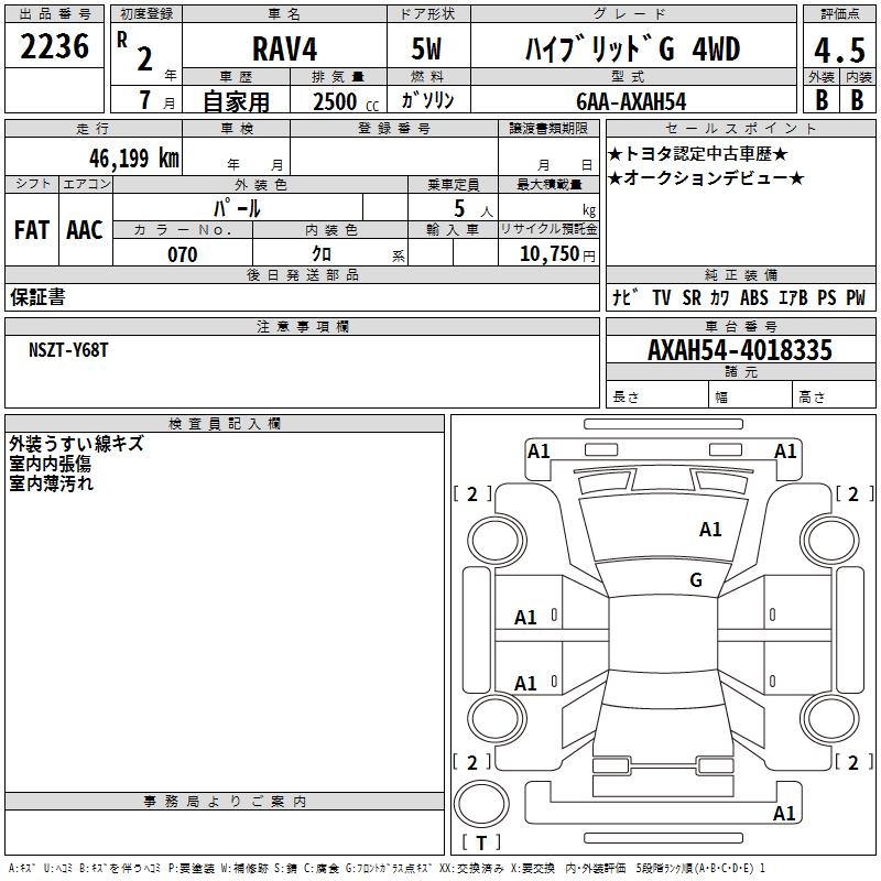 TOYOTA RAV4 HYBRID G 4WD - лот 2236