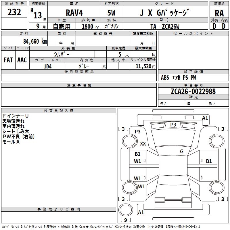 TOYOTA RAV4 J X G PACKAGE - лот 232