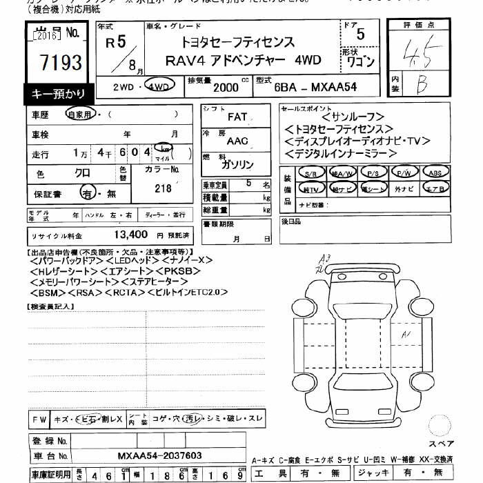 TOYOTA RAV4 4WD ADVENTURE TOYOTA SAFETY SENS - лот 7193