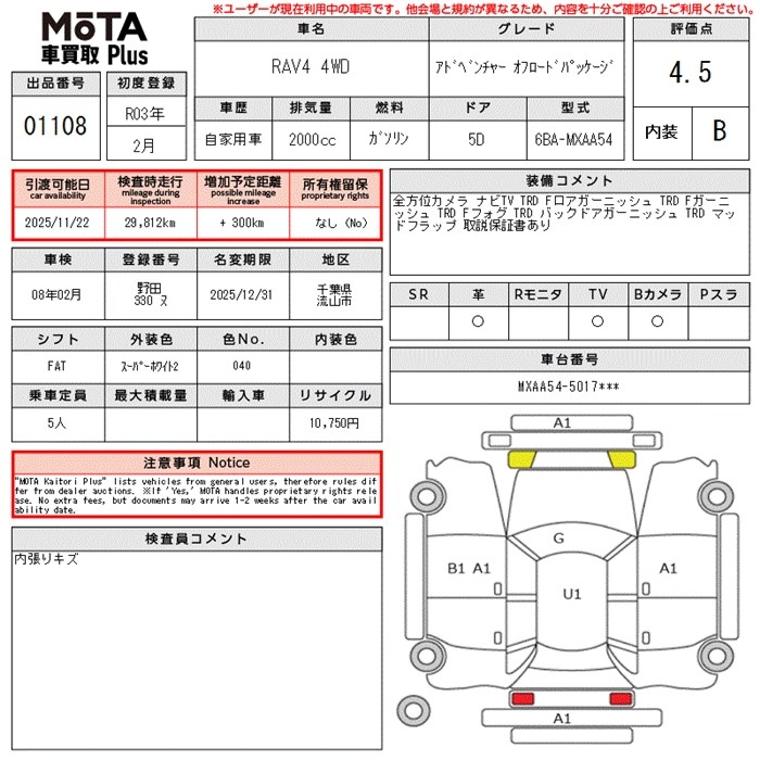 TOYOTA RAV4 ADVENTURE OFFROAD PACKAGE - лот 1108