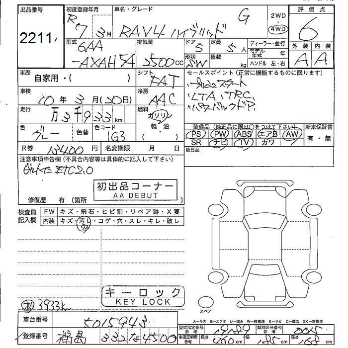 TOYOTA RAV4 4WD HYBRID G - лот 2211