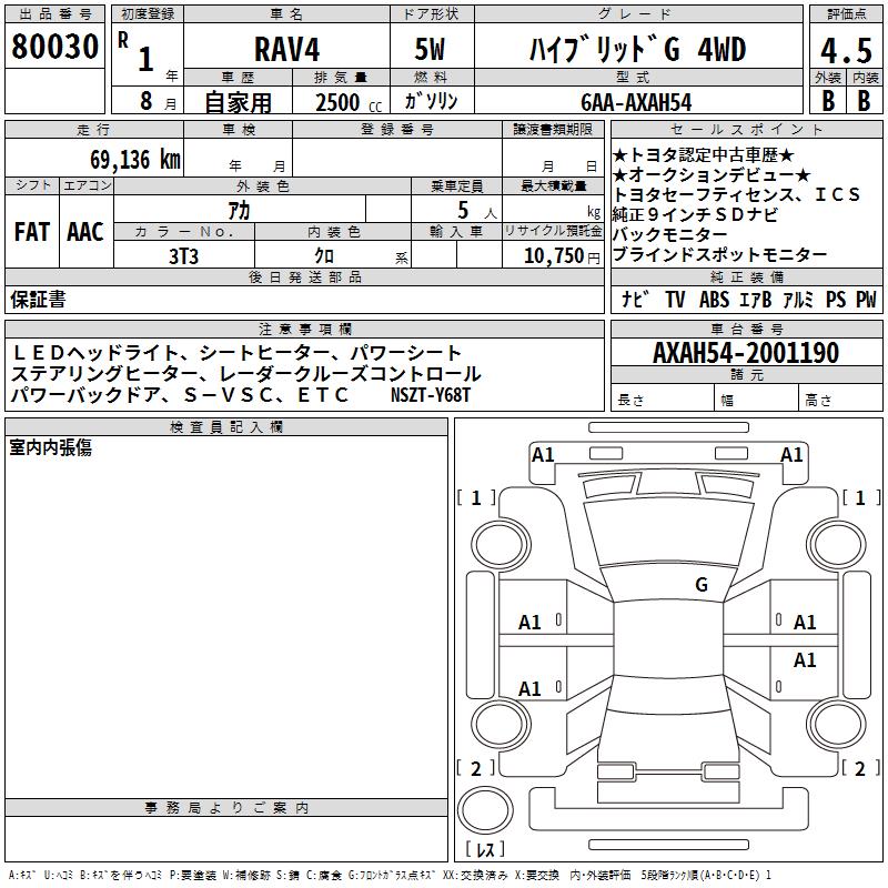 TOYOTA RAV4 HYBRID G 4WD - лот 80030
