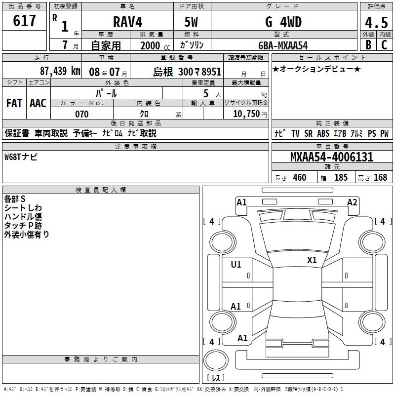 TOYOTA RAV4 G 4WD - лот 617