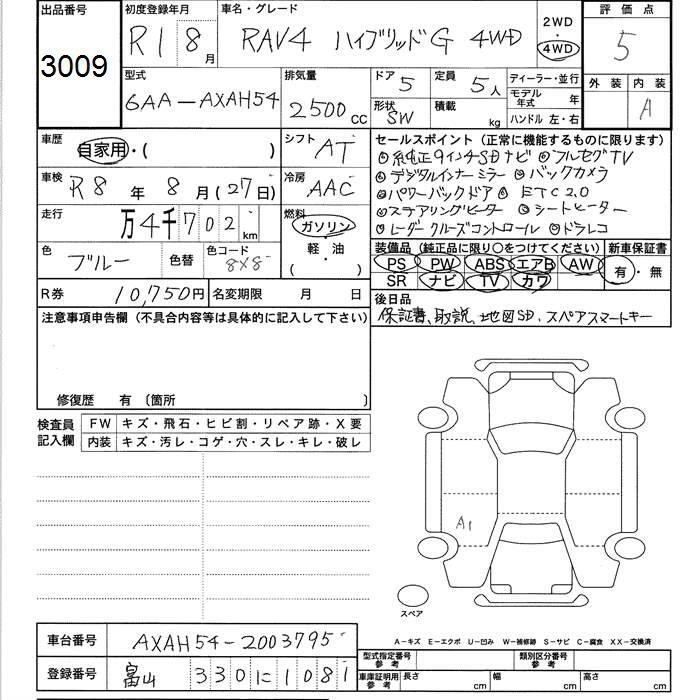 TOYOTA RAV4 4WD HYBRID G - лот 3009