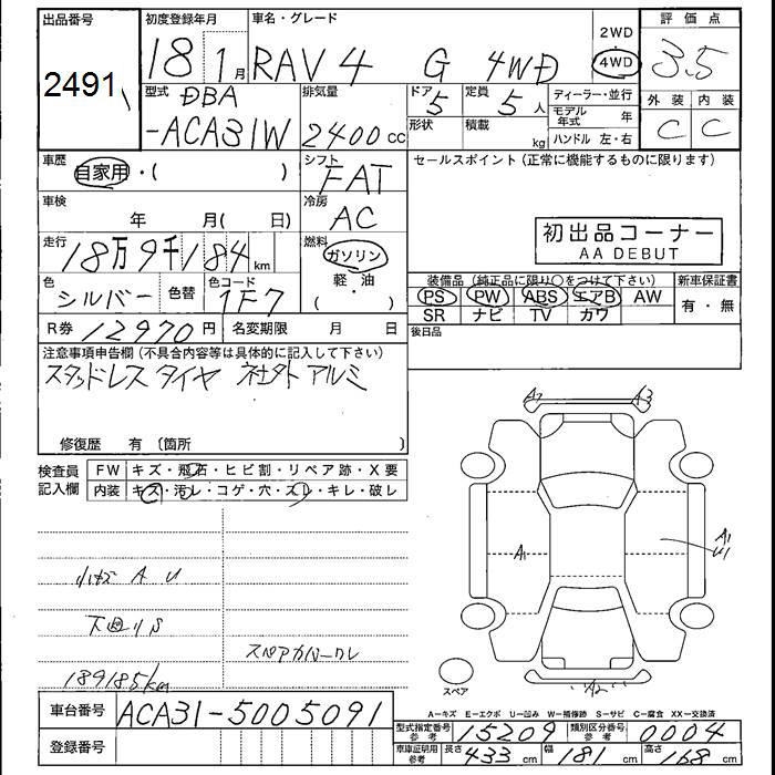 TOYOTA RAV4 4WD G - лот 2491
