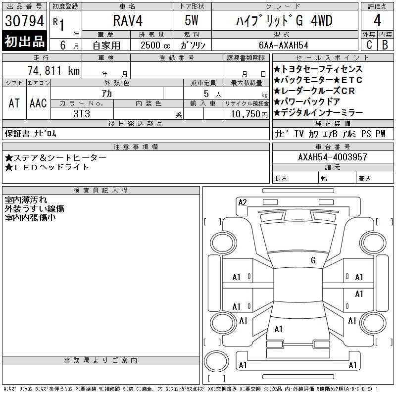 TOYOTA RAV4 HYBRID G 4WD - лот 30794