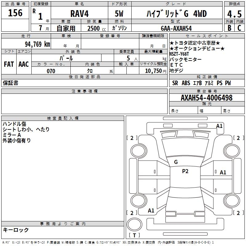 TOYOTA RAV4 HYBRID G 4WD - лот 156