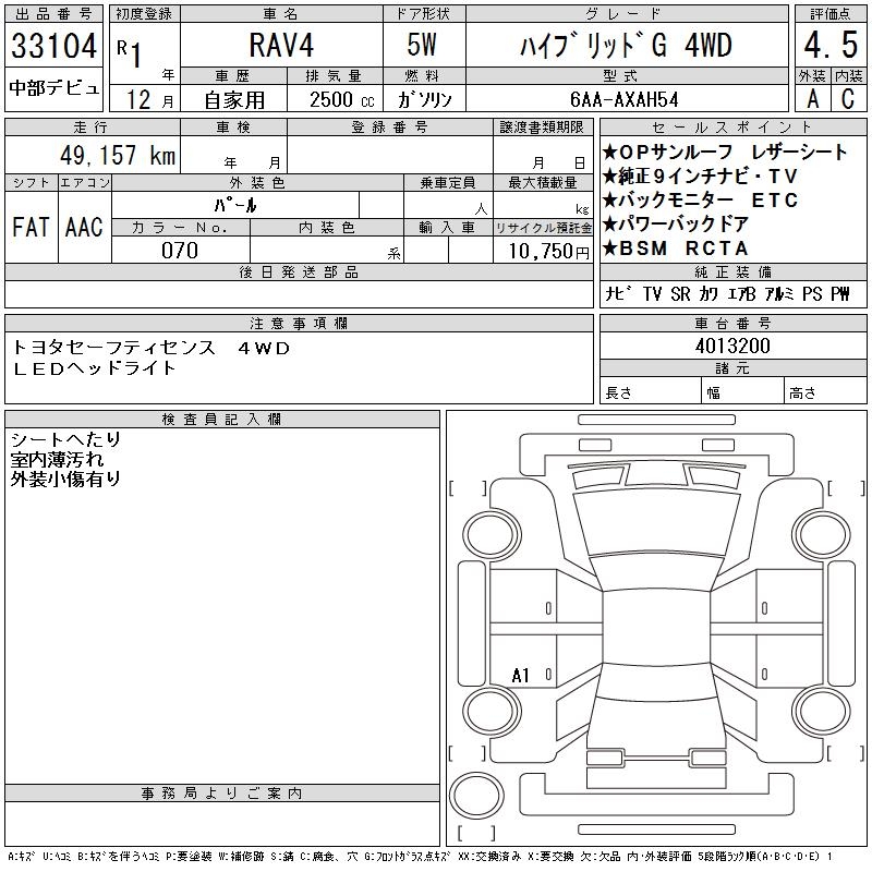 TOYOTA RAV4 HYBRID G 4WD - лот 33104