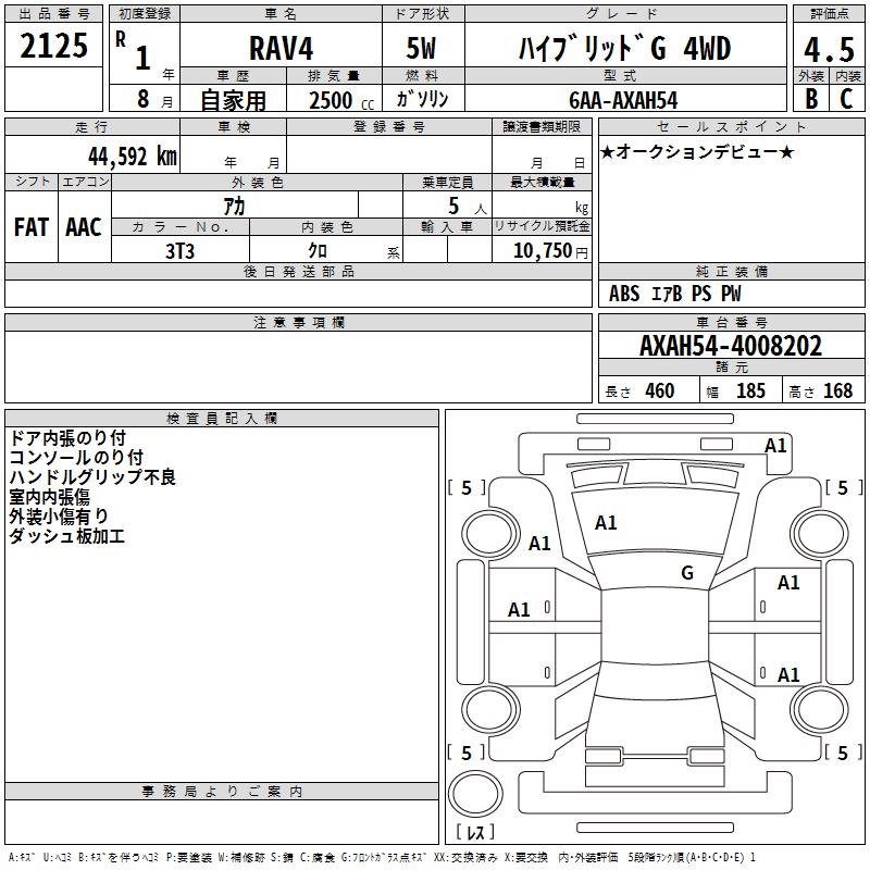 TOYOTA RAV4 HYBRID G 4WD - лот 2125