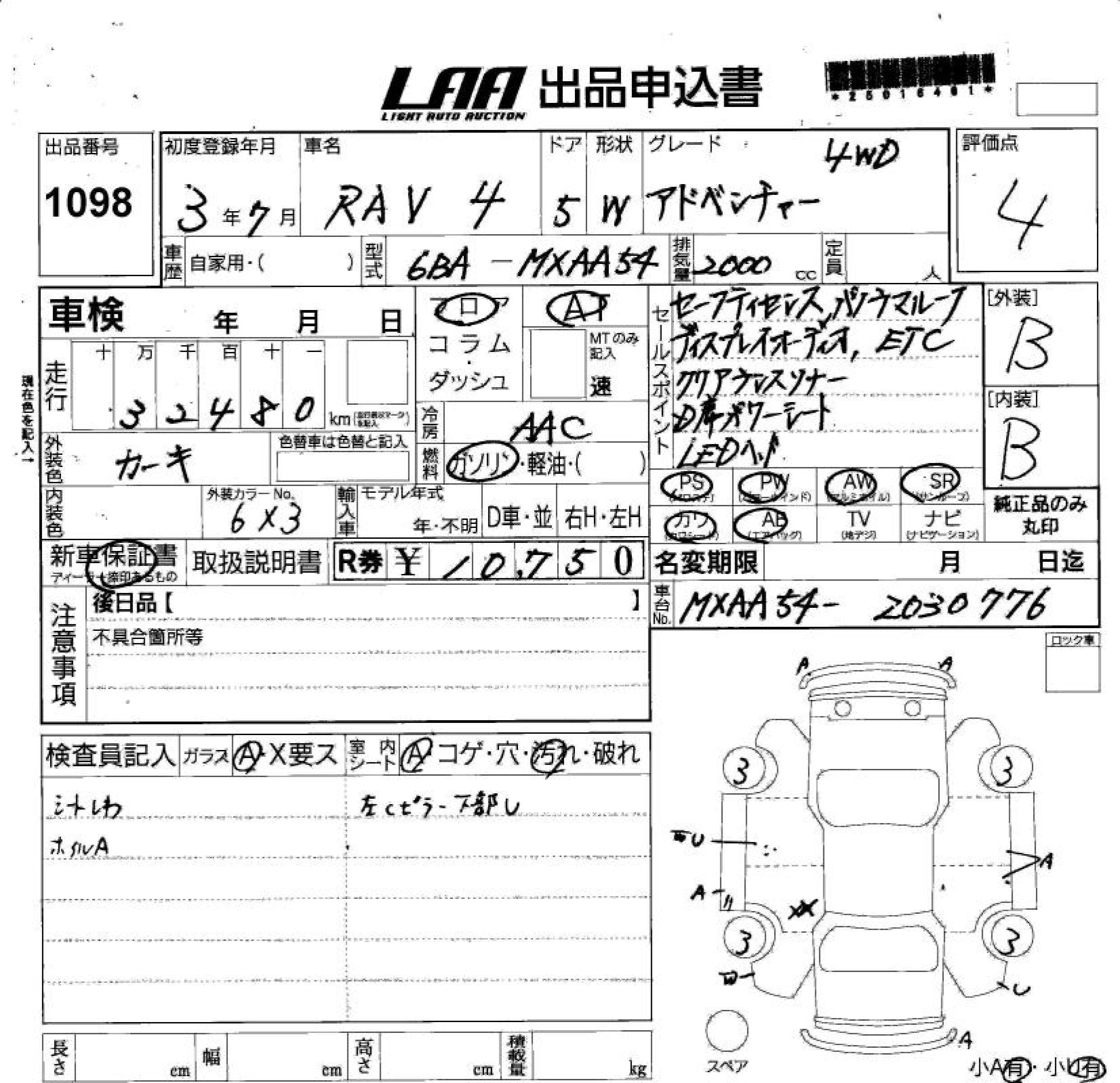 TOYOTA RAV4 ADVENTURE 4WD - лот 1098