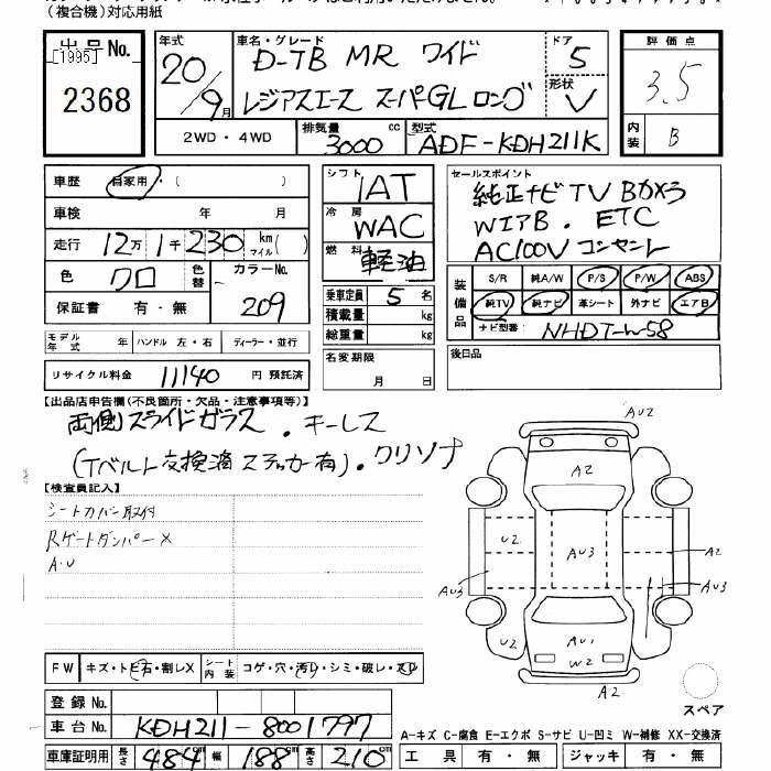 TOYOTA REGIUS ACE SUPER GL LONG D-TB MR WIDE - лот 2368