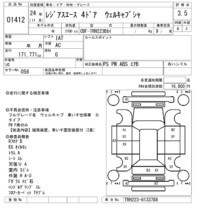 TOYOTA REGIUS ACE WELL CAB CAR - лот 1412