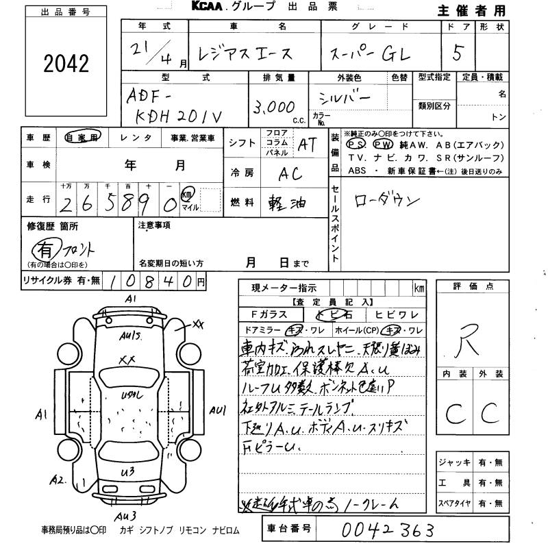 TOYOTA REGIUS ACE SUPER GL - лот 2042