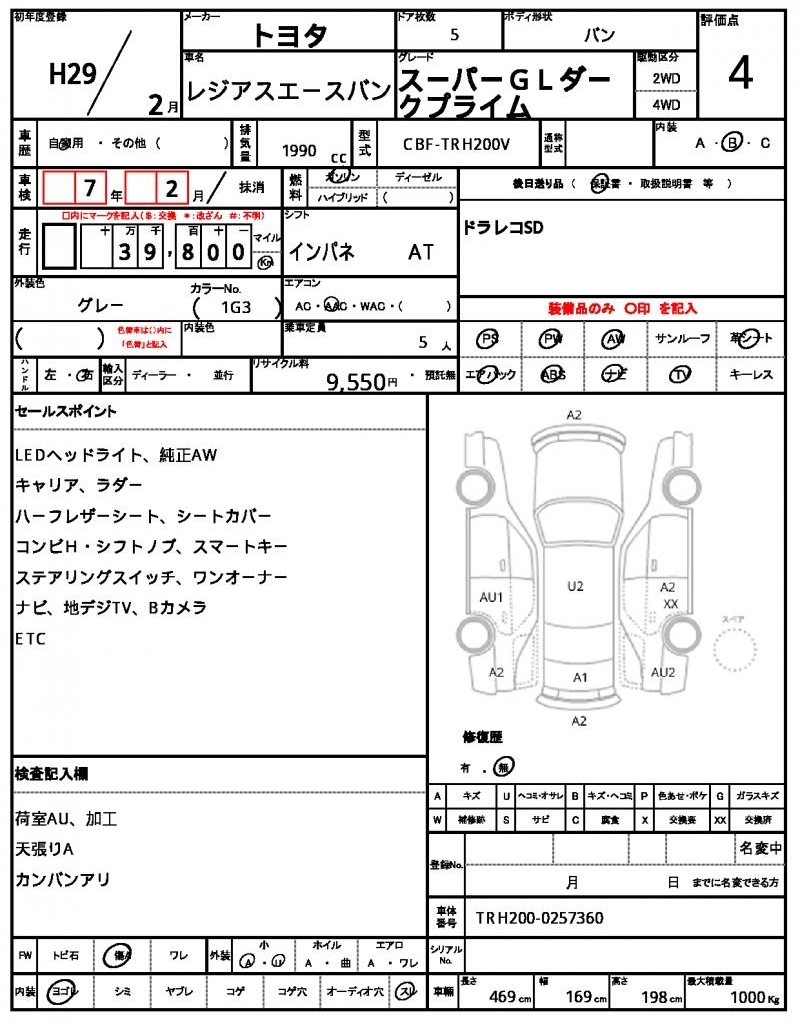 TOYOTA REGIUS VAN - лот 57144