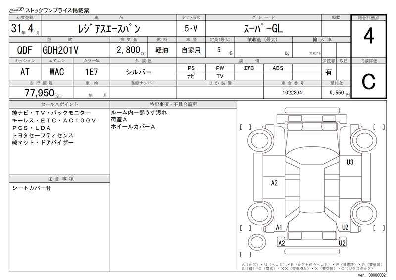 TOYOTA REGIUS VAN - лот 8882