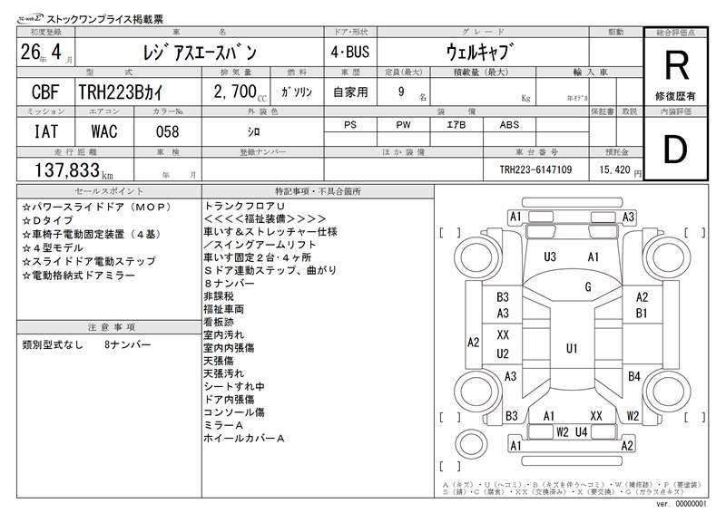 TOYOTA REGIUS VAN - лот 8721