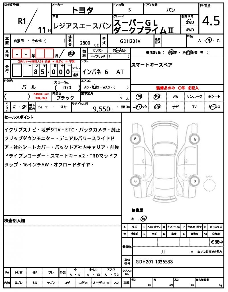 TOYOTA REGIUS VAN - лот 42511