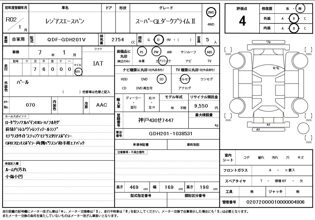 TOYOTA REGIUS VAN - лот 62762